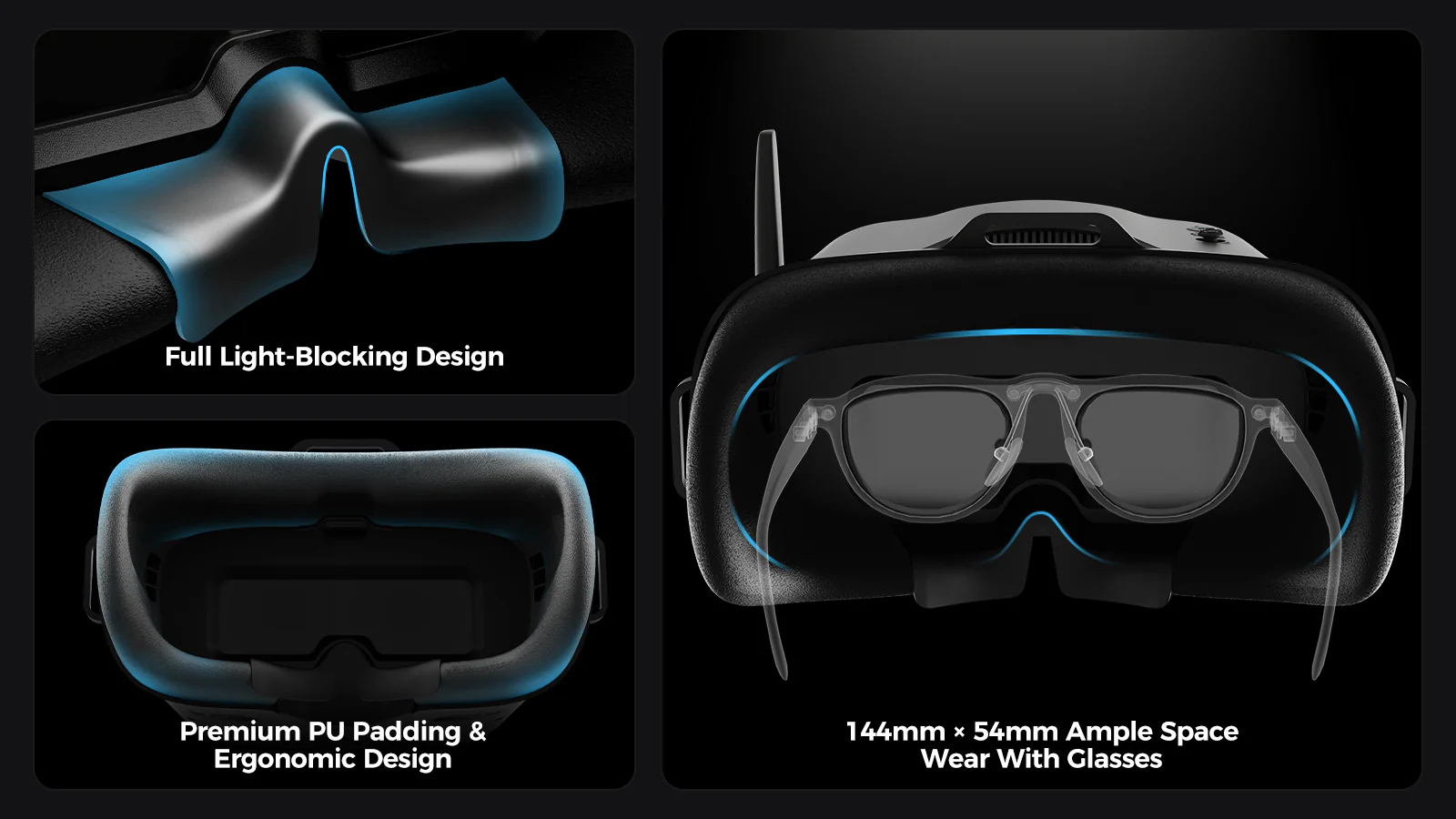 Разработанные для полного погружения и комфорта, очки VR04 имеют удобную для ношения с очками конструкцию с достаточным пространством, поэтому вам никогда не придется снимать очки. Благодаря контурной лицевой подушке и мягкой резиновой переносице они эффективно блокируют внешний свет, надежно фиксируясь для более длительных и целенаправленных сессий. Встроенный аккумулятор емкостью 2000 мАч обеспечивает до 2 часов работы в режиме ожидания, а запись одним нажатием кнопки позволяет легко сохранять видео непосредственно на карту microSD.